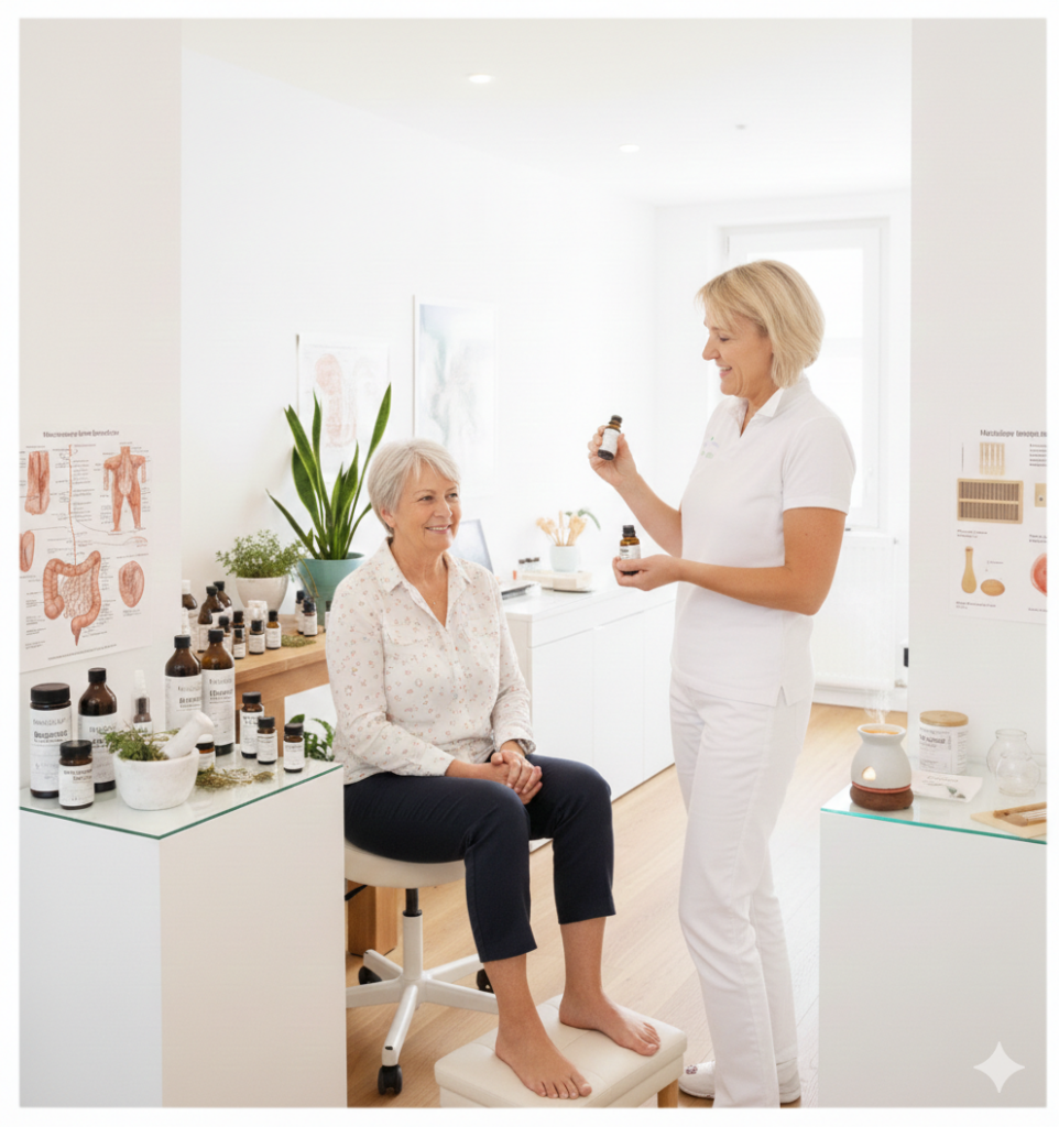 Ganzheitlich heilen. Vitalität wecken. Wahre Gesundheit entsteht im Einklang von Körper und Geist. Ergänzend zur klassischen Therapie nutzen wir die Kraft der Naturheilkunde, um Ihre Selbstheilungskräfte zu aktivieren. Von der Fußreflexzonentherapie bis zu ayurvedischen Impulsen – wir betrachten Sie ganzheitlich, um Ursachen zu lösen statt nur Symptome zu behandeln.